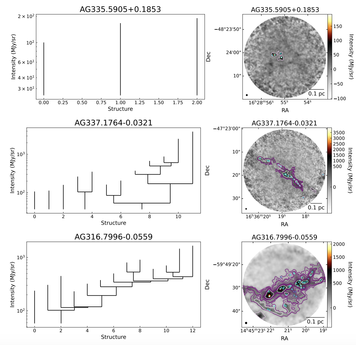 Investigating the multi-scale fragmentation of dense clumps into compact cores is essential for understanding the processes that govern the initial distribution of mass in stellar clusters and how high-mass stars (>8 M⊙) form. We present a catalog of the hierarchical continuum structure from 904 clumps observed in the ALMAGAL program, a high resolution (0.15"−0.8") 1.38 mm Atacama Large Millimeter/submillimeter Array (ALMA) large program targeting dense clumps capable of high-mass star formation throughout the Galactic disk. We use astrodendro, a dendrogram-based algorithm, on a uniform linear resolution (2000 au) version of the data to extract 5160 continuum structures with effective radii spanning 800−42000 au and estimated masses between 0.05−670 M⊙.